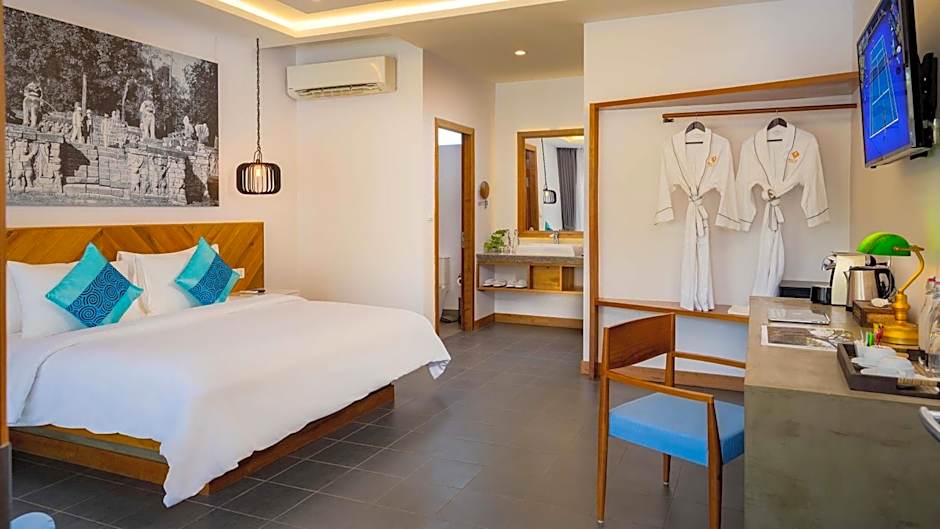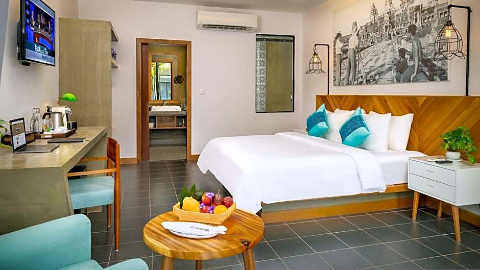 On-site dining comes courtesy of Elysium Restaurant, delivering flavors from American, Cambodian, and Asian cuisines. The space offers a few moods to suit any moment—family-friendly, traditional, modern, or romantic—perfect for a relaxed meal after a day of discovery. The outdoor saltwater pool adds a touch of sophistication with adults-only days, ideal for a quiet swim and a little downtime.