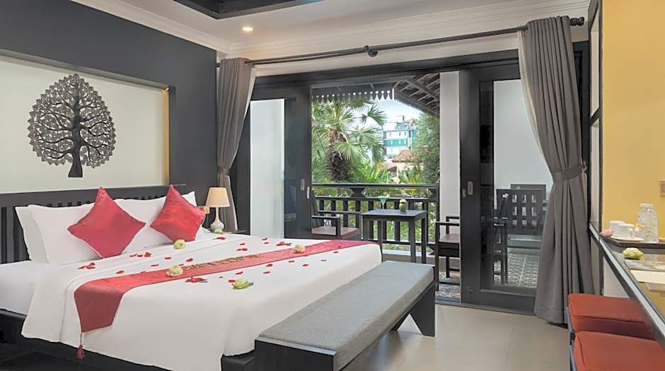 Khmer Mansion Boutique Hotel stands as a four-star retreat in Siem Reap. An inviting outdoor swimming pool with a view invites a dip year-round, while a sun deck, terrace, balcony, and a garden provide plenty of sun-soaked spaces to unwind. Practical comforts include air conditioning and non-smoking rooms, a 24-hour front desk, and free Wifi, with private parking also free. Beach umbrellas are available for easy days in the sun, and an elevator helps with easy access throughout.