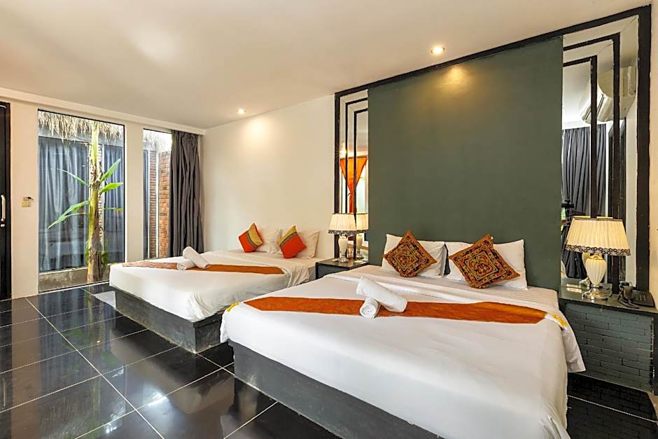 Nestled on Sala Kamreuk Road, about from Siem Reap’s lively center, this 4-star retreat invites travelers to unwind in style. An outdoor swimming pool with a sun deck provides a breezy oasis, while a terrace and garden views add understated charm. Inside, guests can enjoy air conditioning, non-smoking and soundproof rooms, free toiletries, and extra-long beds for a comfortable night’s rest.