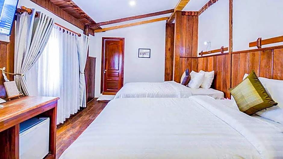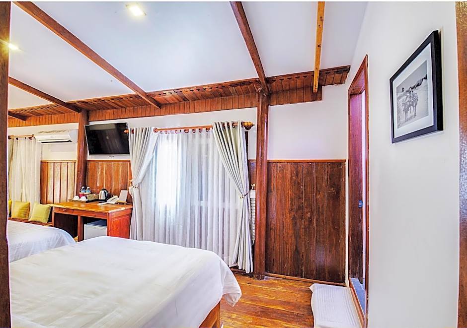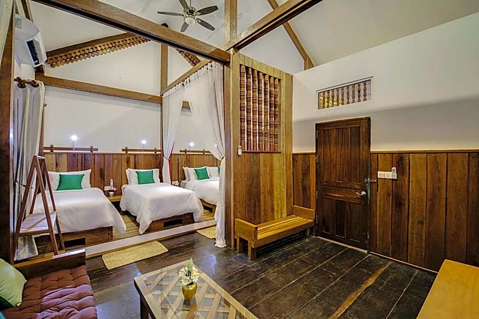 The rooms at Maison Model d'Angkor are designed with your comfort in mind. The Deluxe Double Room offers spacious accommodation, featuring a king-size bed and plenty of room to relax. If you're traveling with family or a group of friends, the Family Suite is the perfect choice. With two twin beds and a queen-size bed, this room can accommodate up to four adults and one child, ensuring everyone has a comfortable place to rest. For those who prefer separate beds, the Deluxe Twin Room is ideal, offering two twin beds and a cozy atmosphere. Lastly, the Deluxe Double Room with Extra Bed provides the flexibility to comfortably accommodate up to three adults with its twin bed and king-size bed arrangement.