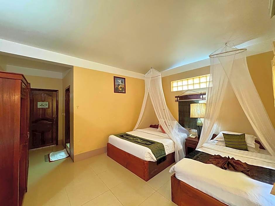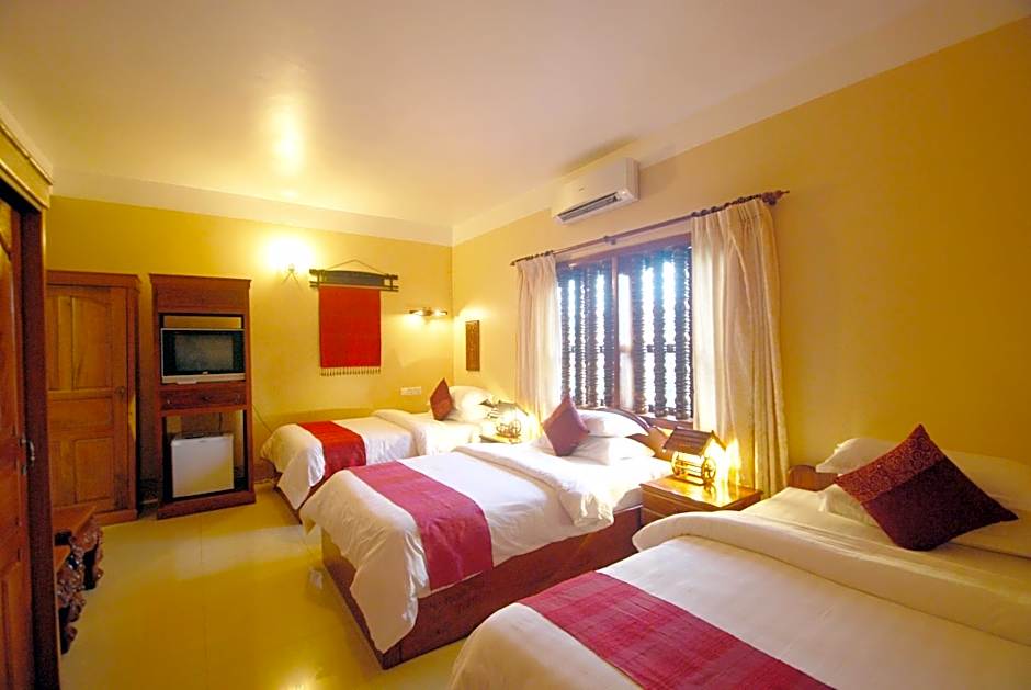 Spacious Khmer-style room offers 3 queen-size beds which can accommodate a family or a big group of 6.