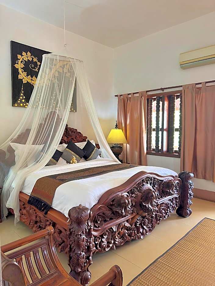 Spacious room with Khmer design elements, feather pillows and cotton duvets. Can accommodate up to 3 guests.