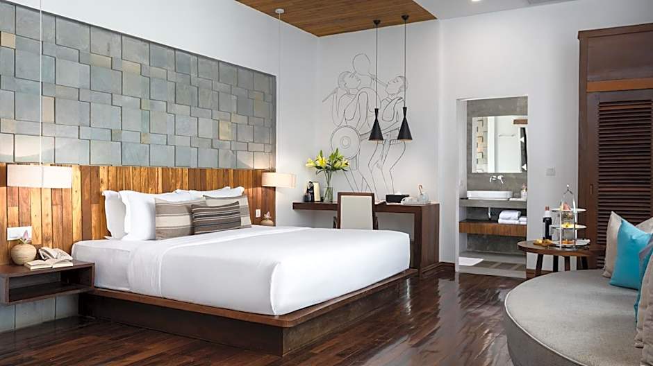 This larger air-conditioned suite opens up to views of the swimming pool. The seating area is fitted with a flat-screen Smart TV and a coffee machine. The private bathroom includes shower facilities, a hairdryer and free toiletries. Complimentary tea/coffee facilities, mini-bar and personal refillable water bottle are available.