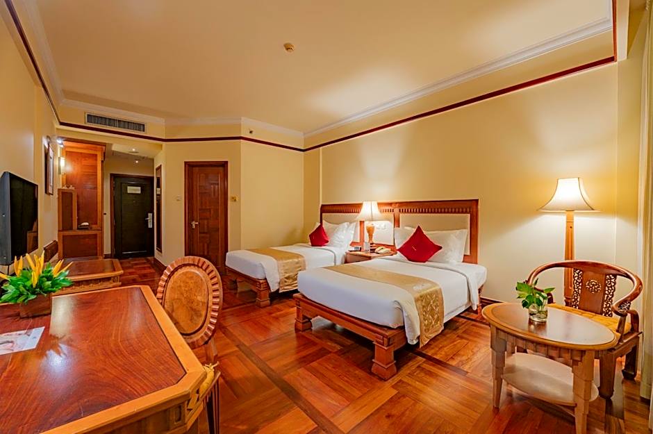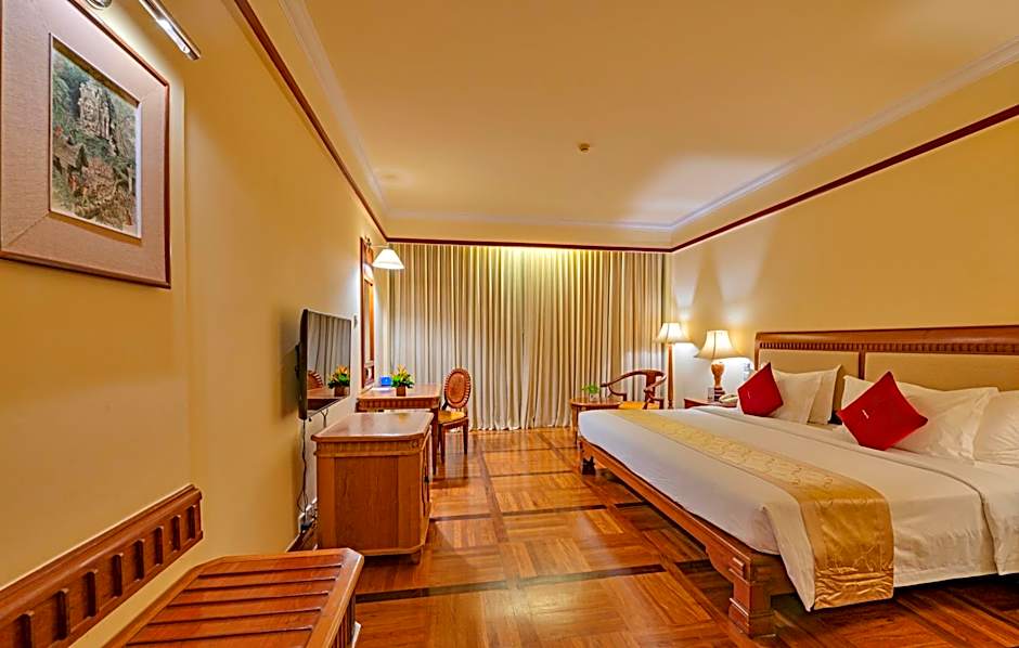 Offers delightful views of either Sivatha Street or the traditional Khmer temple. Room Benefits Included: High-speed Internet Wi-Fi, Free access to the swimming pool, Free access to the Fitness Center, 10% Off on F&B and Laundry, 10% Off on spa (Effective from 15 Oct 2023), Welcome drink and cold towel upon arrival, Tea and instant coffee in the room, Complimentary early check-in and late check-out services (subject to room availability).