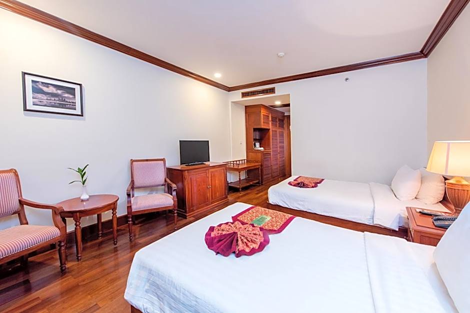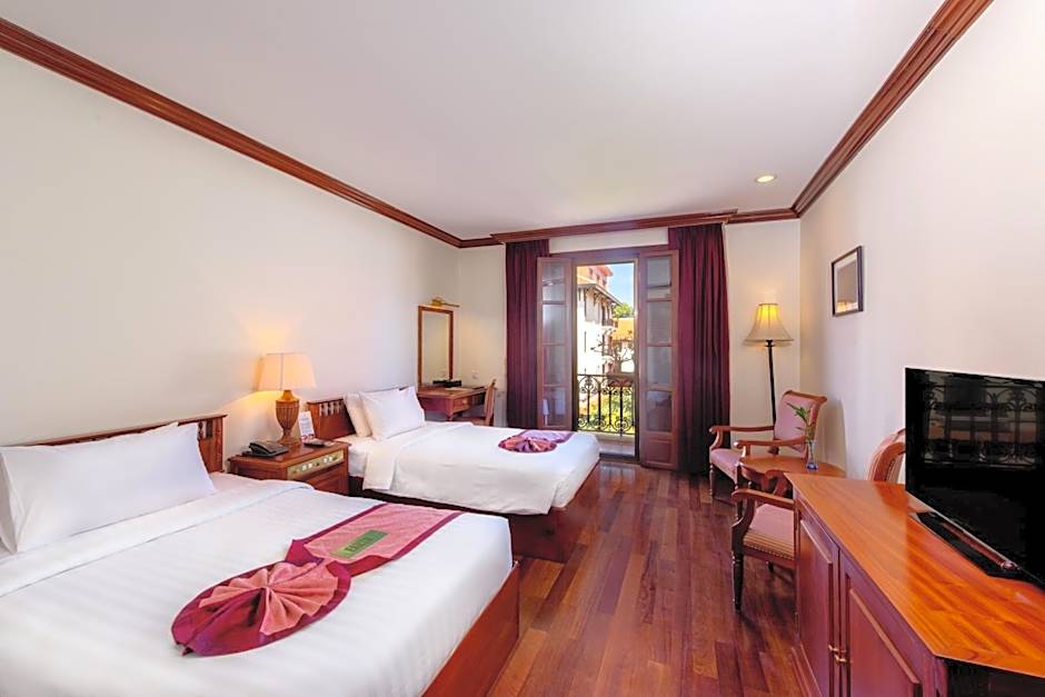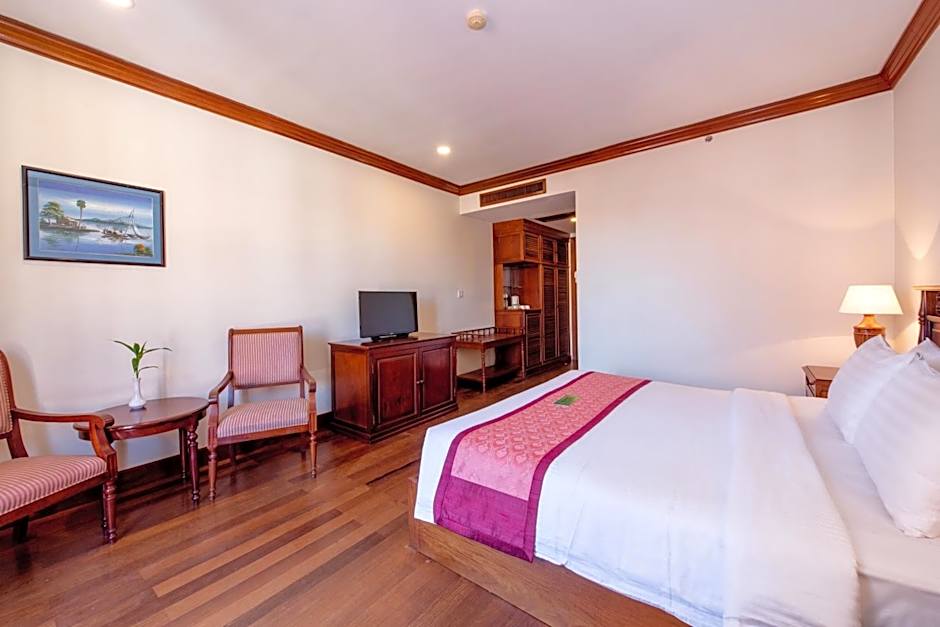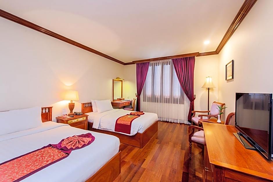 Air-conditioned room offers furnishings made of local materials, a cable TV and private bathroom with a bathtub. Furnished in a French-Cambodian design, these rooms feature wooden floors and soundproof windows.