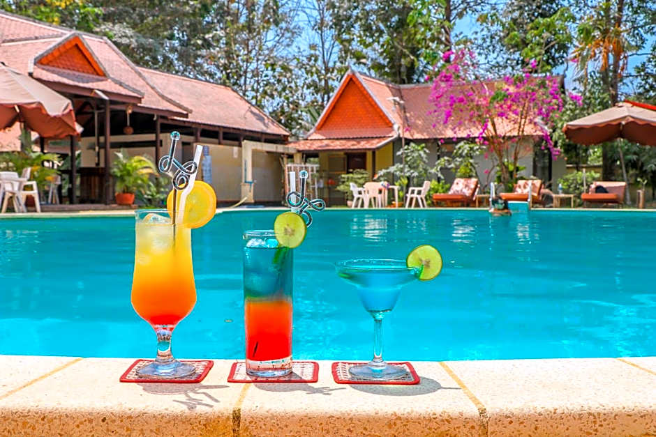 Fitted with 2 single beds, rooms are air-conditioned and offer views of the swimming pool.