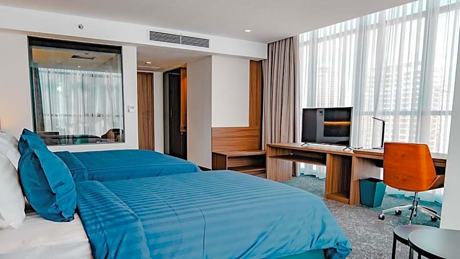 This spacious suite consists of 1 living room, 1 separate bedroom and 1 bathroom with a bath and free toiletries. The air-conditioned suite provides a flat-screen TV, a mini-bar, a tea and coffee maker, a dining area as well as city views. The unit offers 2 beds.