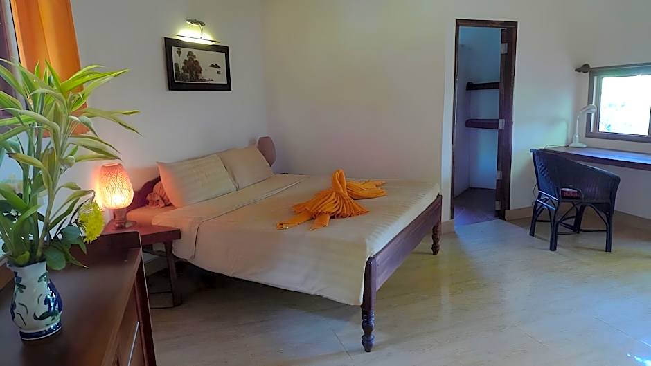 The different rooms you can stay in some by the river with a balcony or pool view individual huts. The accommodating staff so friendly and the amazing food plus the area sit under thatched roof so when it rains but warm still it’s comfortable. Cats and dogs regularly visit to if your and animal lover