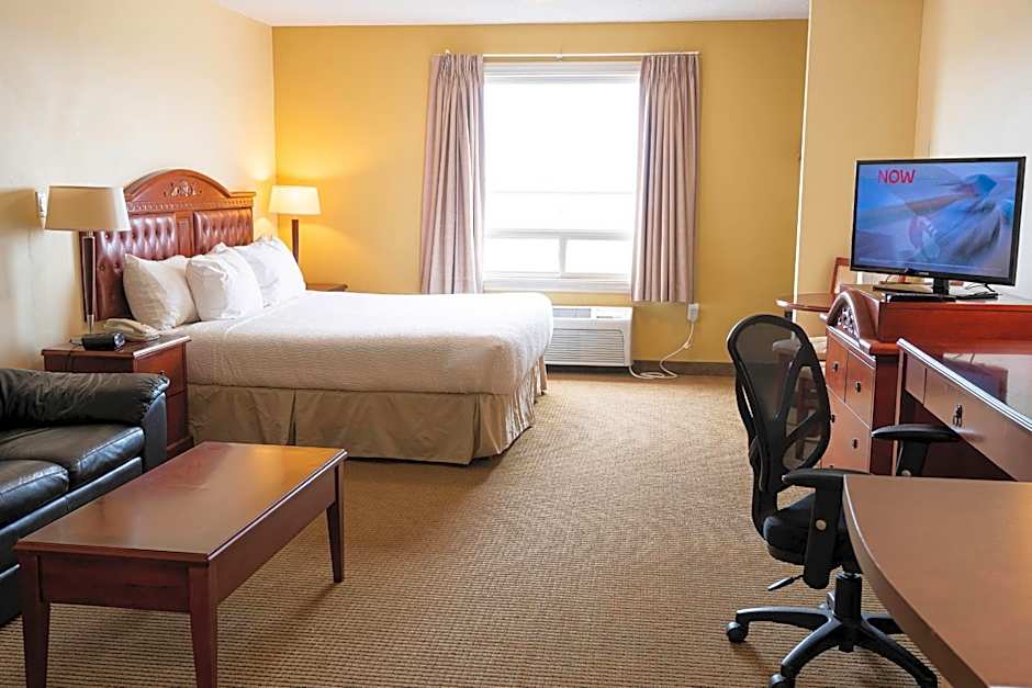 A Family Suite spans 624 square feet and includes a king-size bed for two adults and a space for a child. A variety of other room configurations exist, including Deluxe and Suite options, to fit different plans and budgets for a traveler’s Bonnyville stay.