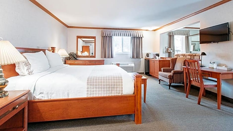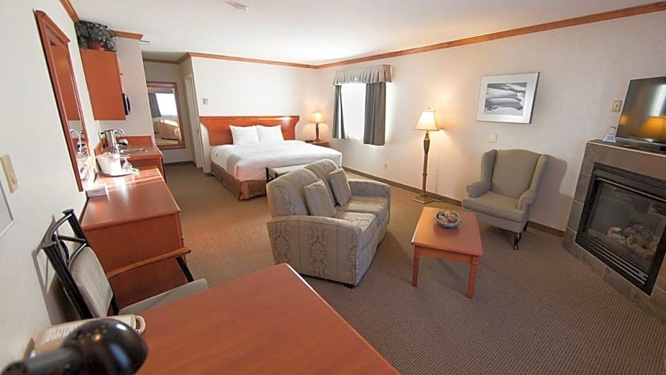 Room choices cover a wide range, from the Miette Suite with Fireplace for two (King bed) to the Suite with Jetted Tub and Fireplace (King bed), and the Run Of House for larger groups. Family travelers can opt for the Family Suite with multiple beds, sofa bed, and bunk bed, while couples may choose a King Room or the Deluxe Queen Room with two Queens. For those seeking extra space, options like the Superior Suite (King) or Mountain View suites offer added comfort.