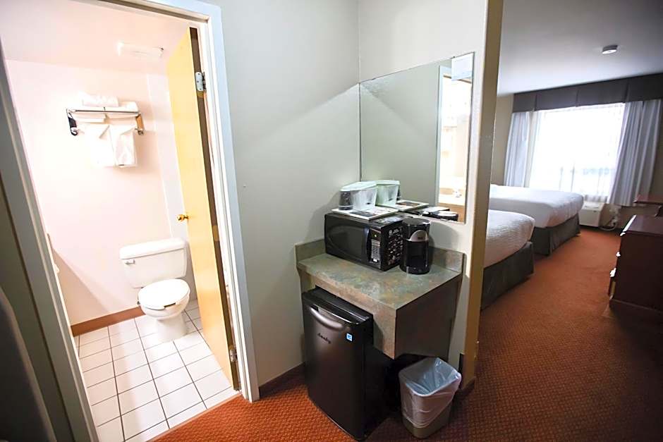 This family friendly room features a microwave, mini-refrigerator, tea/coffee maker and small table with chairs.