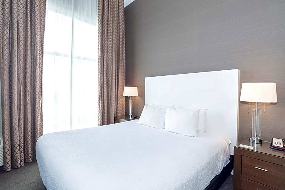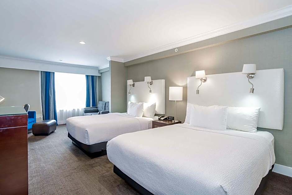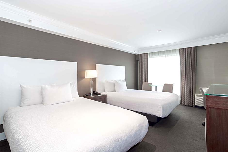 The Sandman Hotel Abbotsford Airport offers a variety of rooms including the Grand Room with 2 Queen beds which can accommodate up to 4 adults and 3 children, the Standard Room with 1 King bed for 2 adults and 1 child, and the Standard Suite with 1 King bed and a kitchen or kitchenette option. All rooms are non-smoking and vary in size. The Family Suite is unique as it includes 1 King bed and bunk beds, accommodating up to 3 adults.