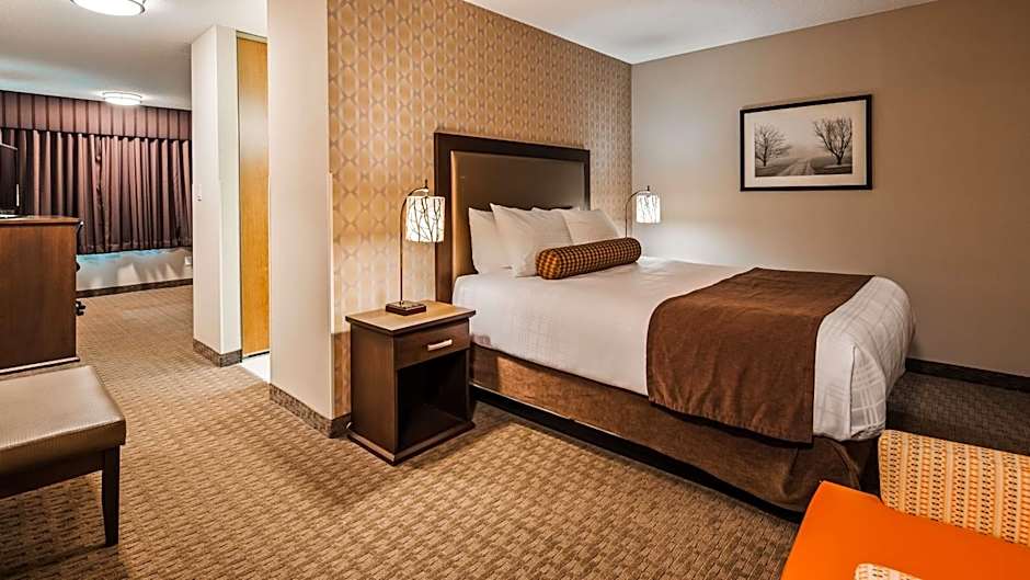But wait, there's more! Best Western Plus Country Meadows Inn offers a variety of room options to suit your preferences and needs. Whether you're traveling alone, with a partner, or with your family, there's a room for everyone. From the spacious and comfortable Standard King Room, perfect for families with its sofa bed, to the cozy and intimate King Room with Jacuzzi, ideal for a romantic getaway, you can find the perfect accommodation for your stay. All rooms are non-smoking and feature modern amenities such as air conditioning, flat-screen TVs, and private bathrooms, ensuring a comfortable and enjoyable stay.