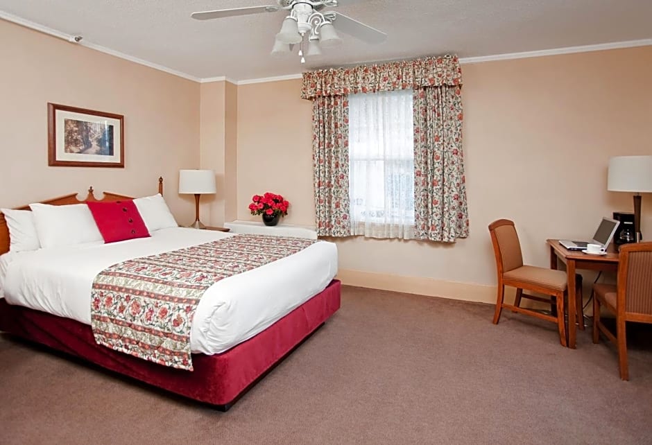 The hotel offers Queen Rooms with Two Queen Beds and Mountain View, which are suitable for families with a maximum occupancy of 4 adults and 1 child. These rooms have a size of 248 sqft and do not allow smoking. Additionally, there are Double Rooms and Queen and Single Rooms available in the Heritage Building, with a maximum occupancy of 2 adults and 0 children for the former, and 2 adults and 1 child for the latter. These rooms have a size of 226 sqft and smoking is not allowed.
