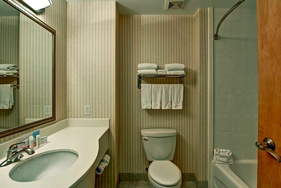 Spacious clean rooms. Big counter in bathroom, lots of space. Mini kitchen area with separate sink, mini fridge/freezer combo, microwave & coffee maker. (I wish hotels would get coffee that tastes good.) we had a King bed suite, sitting area. Furniture was nice, bedside tables with lights and plug ins. Quiet. We had an adjoining suite with family which is convenient. Continental breakfast included eggs, sausage patties, waffles and more, delish! We didn’t make use of the pool & hot tub although it looked good and people were using it. Down side was the one elevator is quite slow. It was a restful stay, thank you. Staff were very accommodating and gracious.