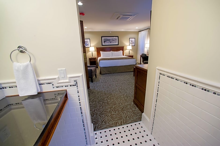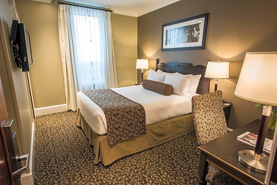 This king room features air conditioning and cable TV. Please note, this room is located above Mike's Place Pub, is interior facing with a privacy glass, and can be noisy on weekends and other busy nights.