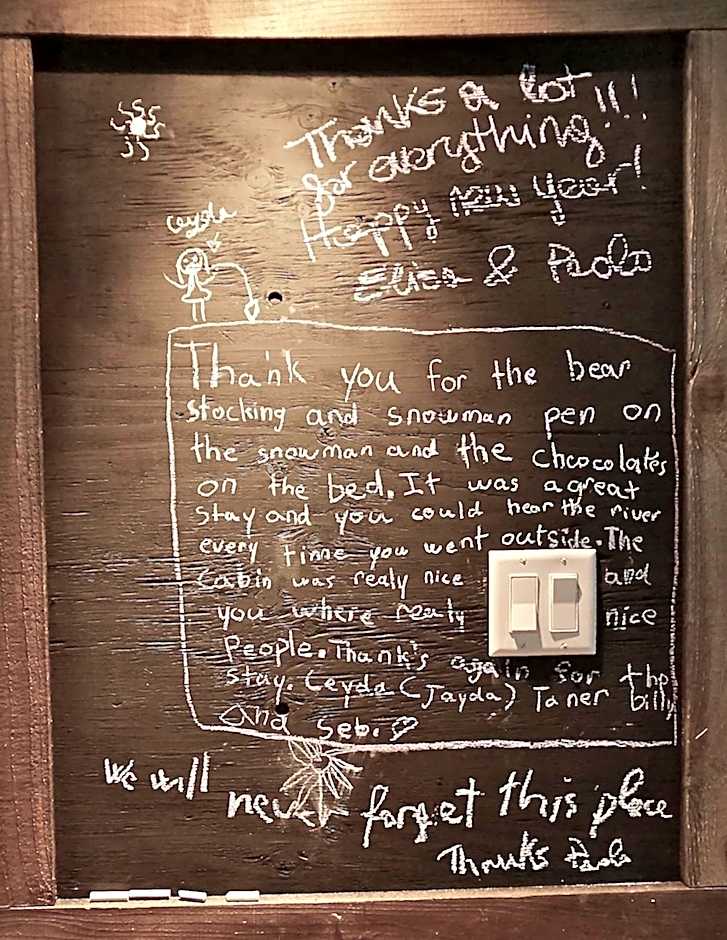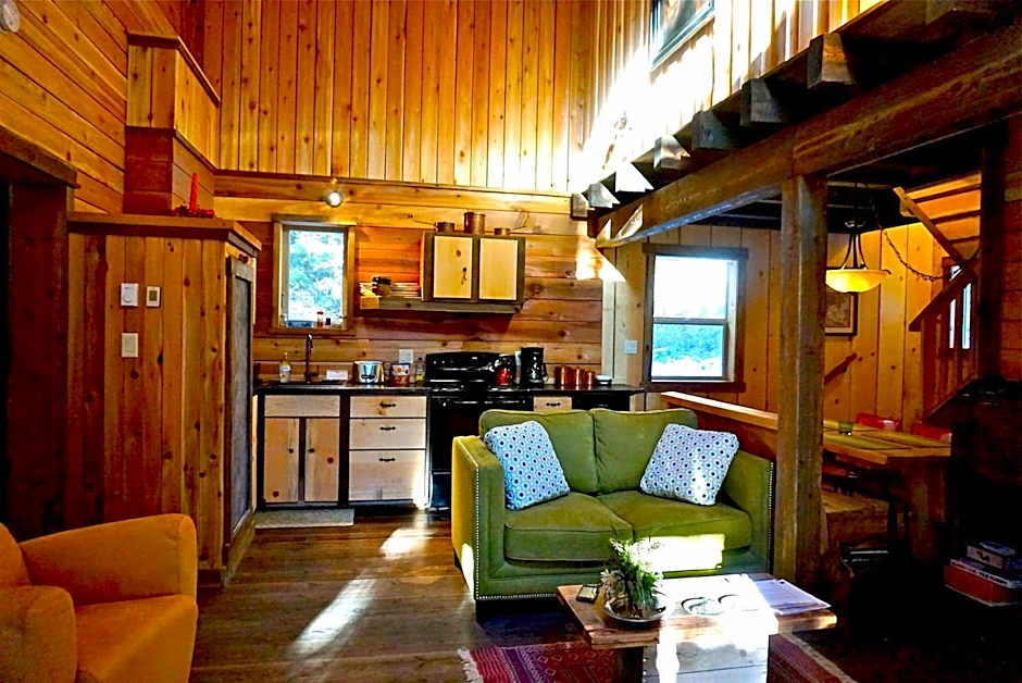 the cabin had that rustic look, and the sound of the little creek and birds. very peaceful place.