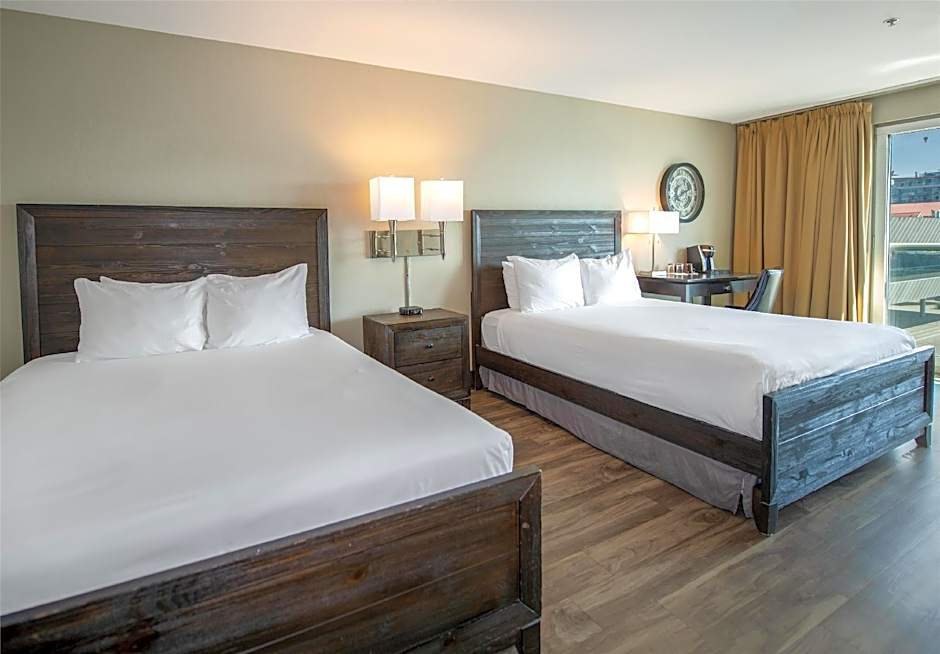 Deluxe Room with Two Queen Beds 355sqft/32sqm-398sqft/37sqm, Max 4 people, partial ocean view, free WiFi, work desk and chair, air conditioning, mini fridge, coffee makers, full bathroom with tub, iron & ironing board, hair dryer, flat screen TV, telephone with voicemail, alarm clock, nonsmoking.