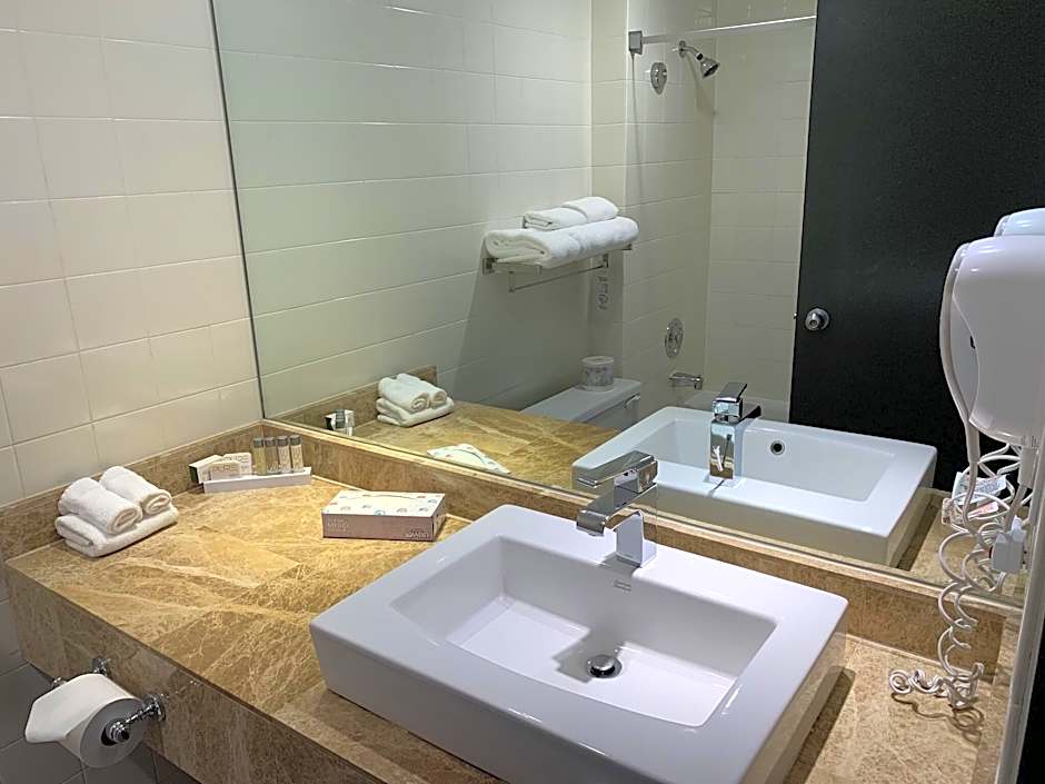Executive Room with One Queen Bed 355sqft/32sqm-398sqft/37sqm, Max 2 people, partial ocean view, free WiFi, deluxe linen, bath rob, slippers, work desk and chair, air conditioning, mini fridge & microwave, water cooler, coffee makers, full bathroom with tub, iron & ironing board, hair dryer, flat screen TV, telephone with voicemail, alarm clock, nonsmoking.