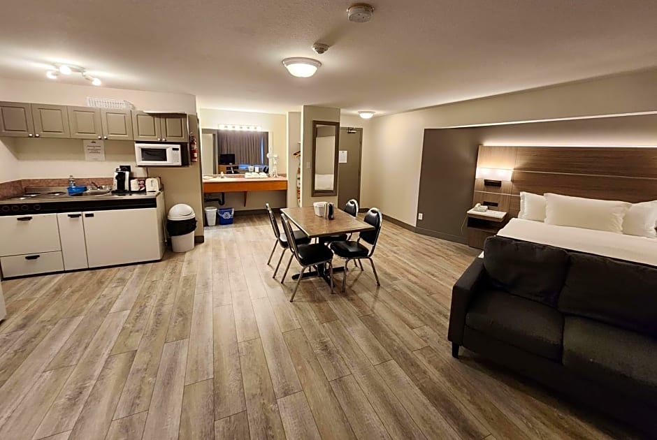 Free high-speed WiFi, free continental breakfast, kitchen, mini-refrigerator, wet bar, microwave, oven, stove, in-room temperature control, coffee/tea maker, hair dryer, HDTV, bathroom amenities, alarm clock, desk, iron, ironing board, table and chairs