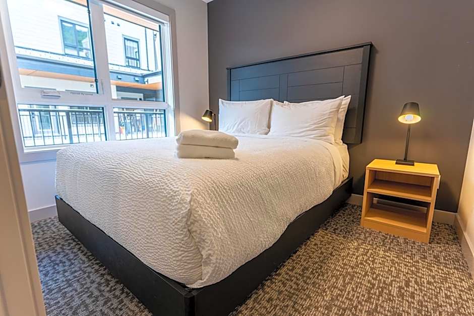 Each apartment comes with a full kitchen and kitchenware, plus a bathtub for unwinding after a day of exploring Revelstoke. Practical comforts include free Wifi and air conditioning, along with non-smoking options and free parking both private and on-site.