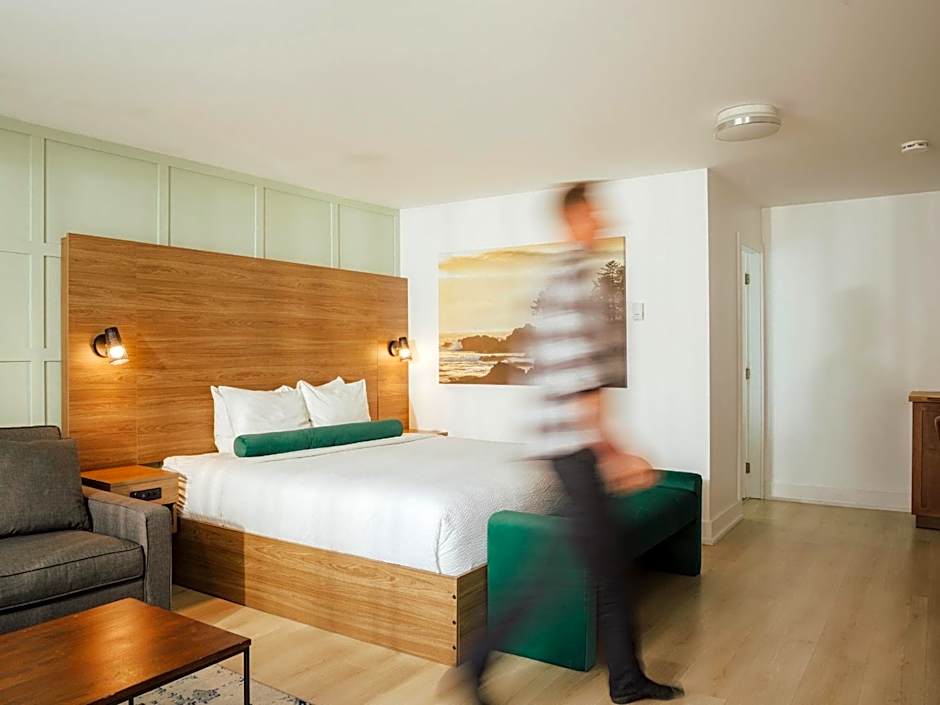 Clean room. More spacious than most motels. No stovetop, but had counter top space above the fridge to prepare cold meals and a table and chairs for eating. Recently renovated, nice smart TV. Shower had acceptable (though not amazing) water pressure, and had a telephone style shower head which you can hold in your hand, which was nice. Location is good, short walk to many restaurants, to a laundromat and to the harbour and aquarium. Price was better than most of the other accommodations in Ucluelet on the days we stayed.