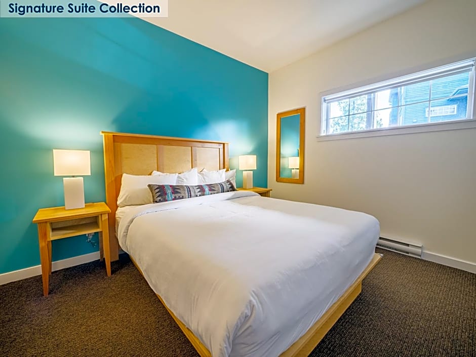 This one bedroom suite feature West Coast decor and feature:. • 1 bedroom with luxury linens and Queen size bed • Pull-out sofa in living room • Full bathroom with bathtub and shower • Full kitchen: dishwasher, microwave, refrigerator & stove • Open concept living and dining room area • Gas fireplace • Private patio with water views • Flat-screen TV and CD stereo • Free WiFi All 1 bedroom units are on ground level and have an inlet view.