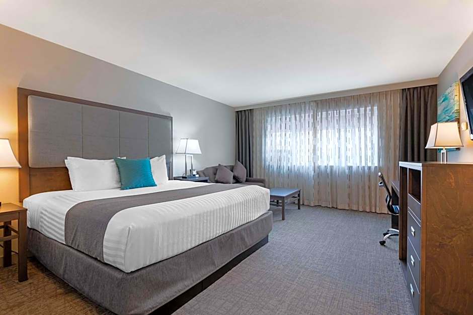 Now let's talk about the room types available at Best Western Plus Sands. The hotel offers a range of accommodations to suit different preferences and group sizes. From cozy double rooms to spacious suites, there is something for everyone. For couples or small families, the Premium King Room with a non-smoking option is ideal. It accommodates 2 adults and 2 children comfortably and features a king-size bed for a restful night's sleep. If you're traveling with a larger group, the Family Suite with a kitchenette and electric fireplace is perfect for accommodating 6 adults and 2 children. With a variety of room options available, you'll find the perfect space to relax and unwind during your stay at Best Western Plus Sands.