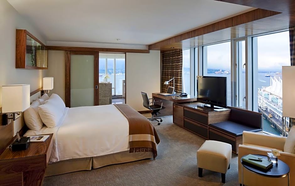 Located on the 20th and 21st floors, this spacious room provides private check-in, personalized butler and concierge services. An exclusive lounge located on the 20th floor features a daily complimentary deluxe breakfast, evening canapés, and a private terrace overlooking Coal Harbor, Stanley Park and the North Shore Mountains. An oversize marble spa bathroom is offered for guest comfort.
