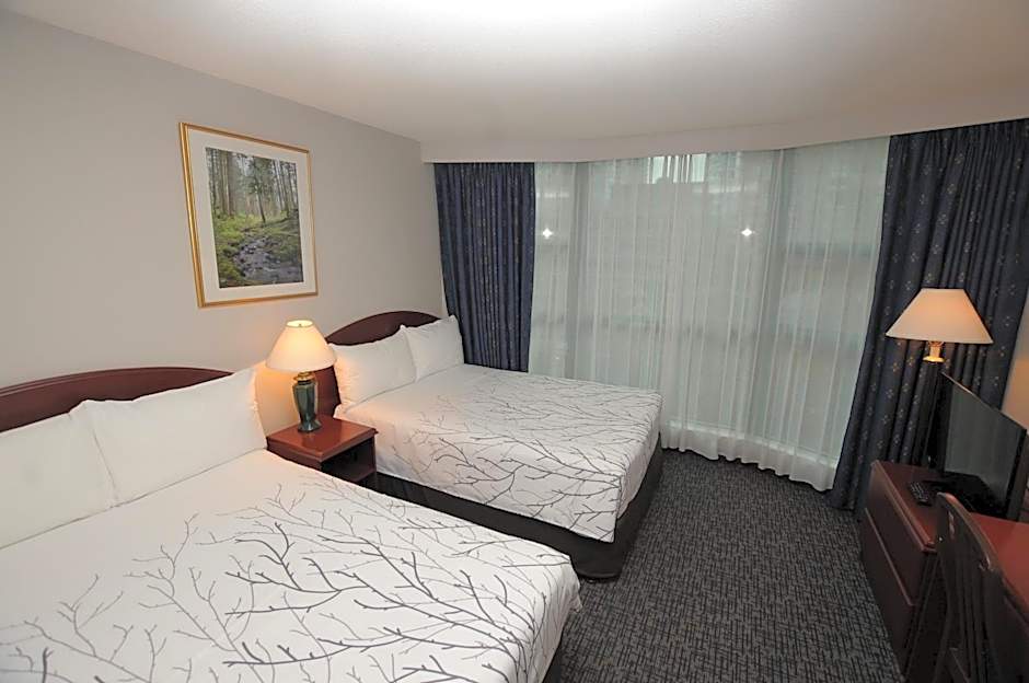 The Rosedale on Robson Suite Hotel offers Deluxe Suites with Two Double Beds and Deluxe Queen Suites. The Deluxe Suite with Two Double Beds has a room size of 484 sqft and can accommodate 4 adults and 3 children. It features two double beds and does not allow smoking. The Deluxe Queen Suite has a room size of 452 sqft and can accommodate 3 adults and 2 children. It features a queen-size bed and a sofa bed, and smoking is not allowed.