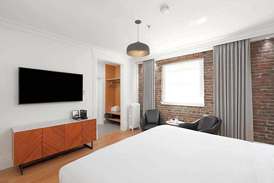 Offering a distinctive blend of history and contemporary design, our Legacy Double Rooms feature original exposed brick from the 18th century, complemented by modern comforts and elegant fixtures. Perfect for those seeking an authentic Vancouver experience, these rooms are as unique as they are inviting.