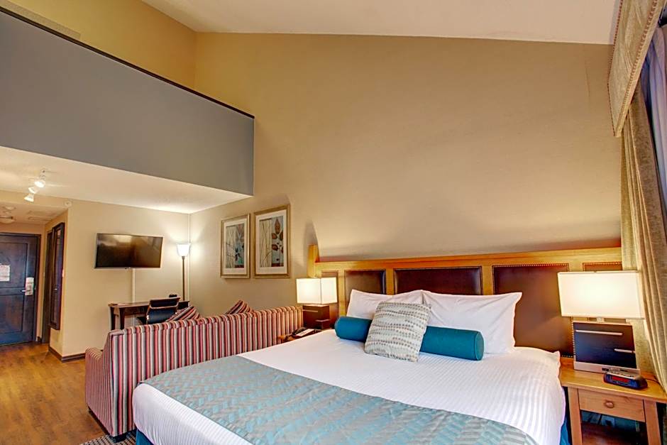 Room choices span a playful range: Studio, Balcony; Studio Suite, Queen; King Room, Balcony; Family Studio; and Studio Loft, King, among others. Each option includes handy touches like a kitchen with kitchenware, non-smoking options, and air conditioning, making it easy to settle in for a cozy night after a day on the trails.