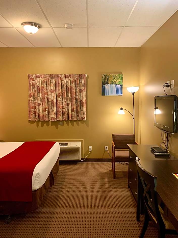 This air-conditioned room features a flat-screen TV with HD satellite, microwave, coffee maker, fridge, desk, and daily housekeeping.