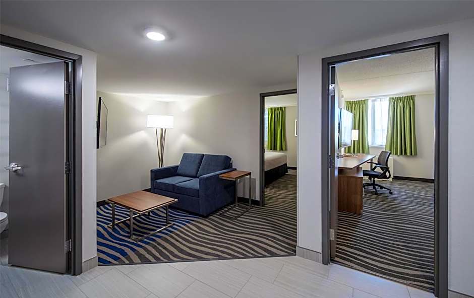 On the palate, Birchwood Restaurant offers American fare, with a second on-site dining option for lineup variety. After a tasty bite, step outside to enjoy the outdoor pool, and little travelers can splash away in a free kids’ pool designed just for them.