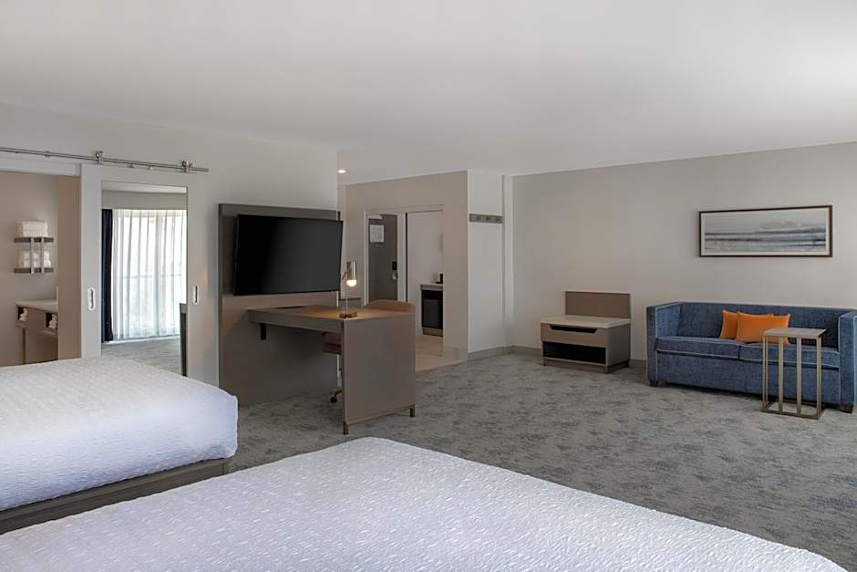 2 Queens Mobility/Hearing Access Tub is 355 square feet and includes 2 queen-size beds 150-154 width and is Wheelchair-accessible.