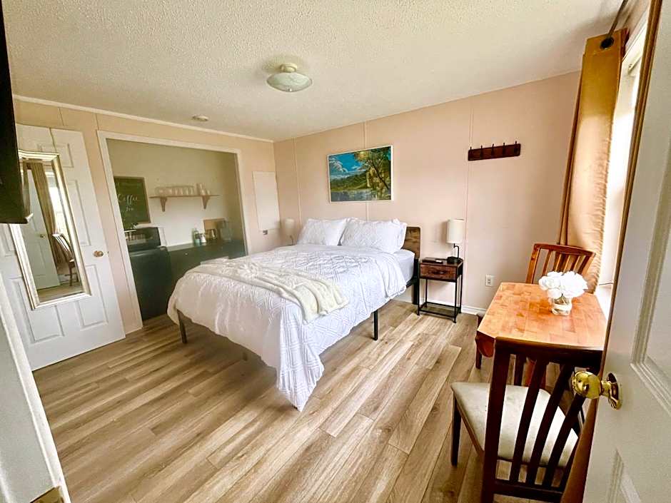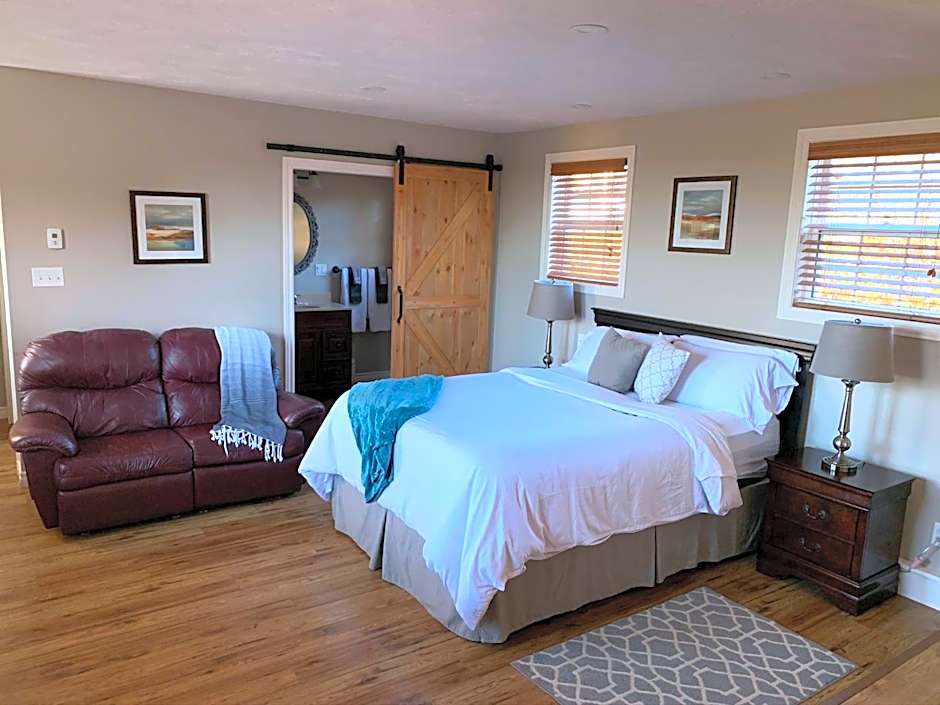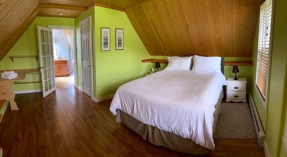 Called The Captain's Quarters, this room features a private entrance with patio. It contains a queen size bed, seating area, mini-fridge, microwave, tea/coffee maker, flat screen TV, satellite channels, free WiFi, and and private bathroom with walk-in shower. It is nonsmoking.