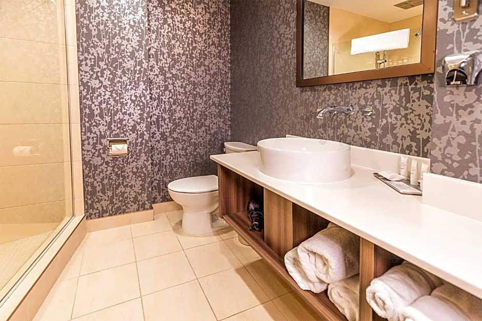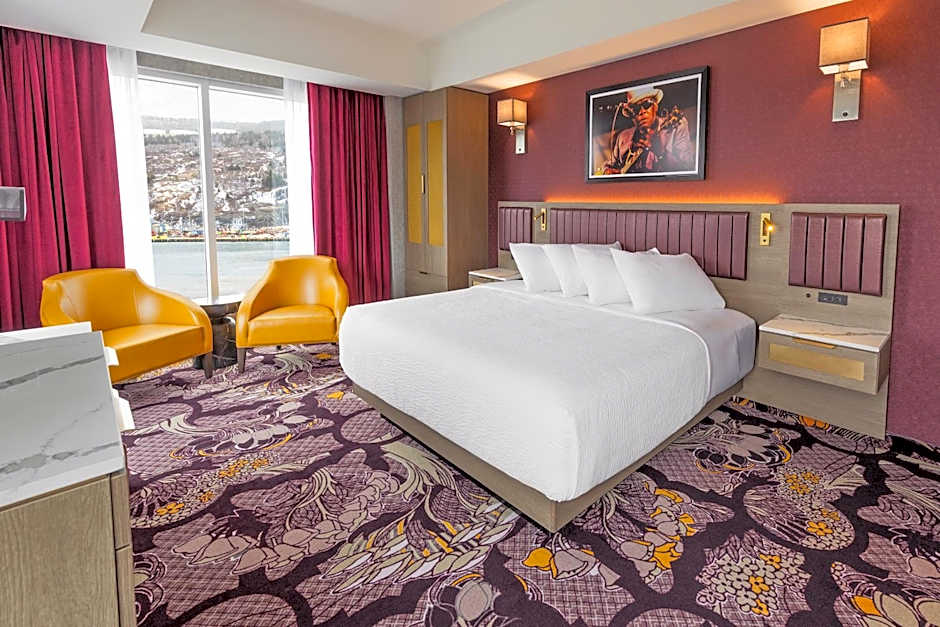 Offering a spacious room with a King Bed and Chesterfield, this stylishly furnished room includes free WiFi and a 42" flat-screen LED TV with cable channels. A mini fridge, in-room safe, and a Keurig coffee machine with complimentary Starbucks coffee and tea are provided. The radios are Bluetooth compatible. Guests will find a hairdryer, bathrobes and toiletries in the bathroom.
