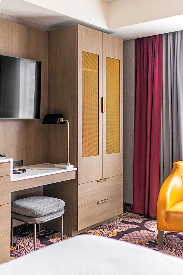 Offering more space and a sofa, this stylishly furnished room includes free WiFi and a 42" flat-screen LED TV with cable channels. A mini fridge and a Keurig coffee machine with complimentary Starbucks coffee and tea are provided. The radios are Bluetooth compatible. Guests will find a hairdryer, bathrobes and toiletries in the bathroom.