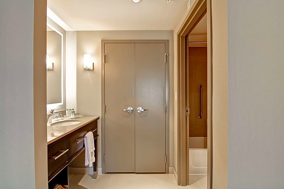 This suite is hearing accessible and offers an accessible shower