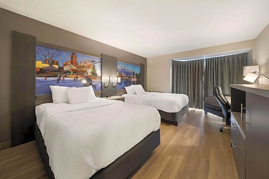 The hotel offers double rooms with two double beds, queen rooms with two queen beds, a queen room with a sofa bed and mobility accessible roll-in shower, a queen room with a sofa bed, and an executive king room with a sofa bed. All rooms are non-smoking and have a size of 205 sqft. Each room type can accommodate up to 4 adults and 3 children.