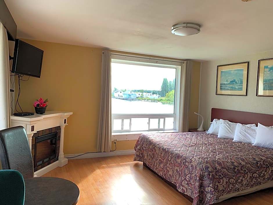 Address: 10 Martin St P.O. Box 251, Blind River, Ontario, Canada. Amenities include free Wi-Fi, free private parking, and air conditioning (free), plus a private entrance, sun deck, balcony, patio, and non-smoking rooms. Pet-friendly (extra charges) is available. A 24-hour front desk keeps things running, while a waterslide, beach chairs (free), playground, and picnic area offer family-friendly options. Views include lake view, river view, and garden view.