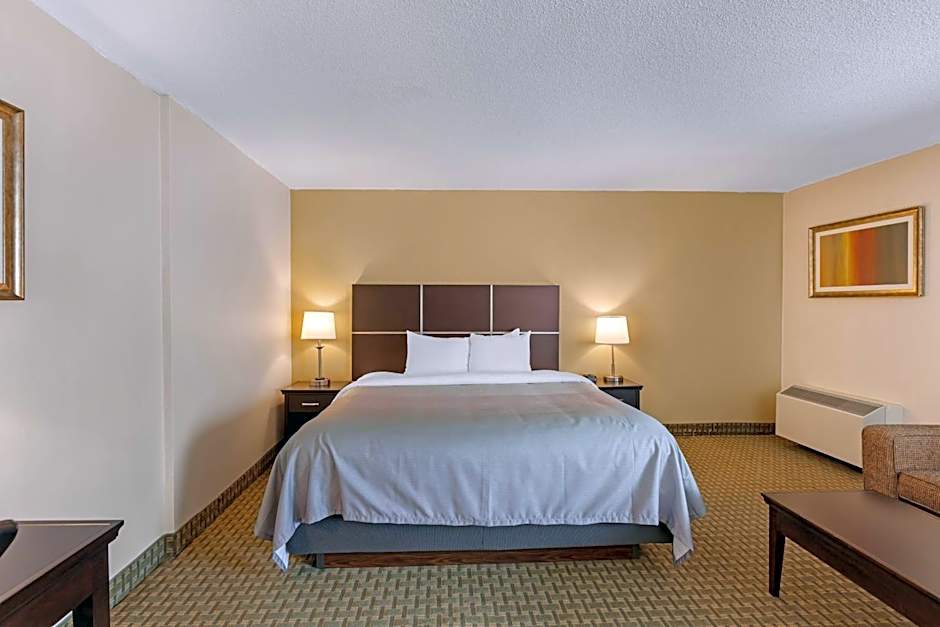 The Quality Inn & Suites offers a variety of room options. The Queen Room with Two Queen Beds is a non-smoking family room that can accommodate 4 adults and 3 children. The King Suite is a non-smoking triple room that can accommodate 3 adults and 2 children, featuring a king size bed and a sofa bed. The King Room is a non-smoking double room that can accommodate 2 adults and 1 child, with a king size bed.