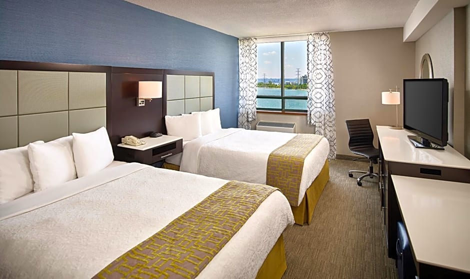 I love the waterfront location and easy parking and check-in. The staff are great and the included breakfast is quite good. If you have a “park view” you can see Lake Ontario from your room and that is also the quiet side. The pool area is nice too.
