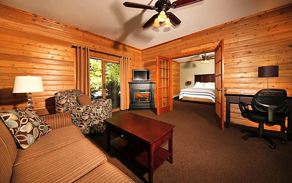 This suite features a fireplace. The spacious suite features air conditioning, a carpeted floor, as well as a private bathroom boasting a bath and a hairdryer. This suite provides a flat-screen TV with cable channels. The unit has 1 bed.