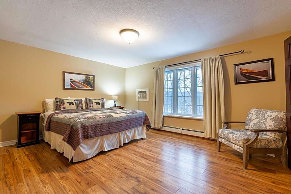 The hotel offers various types of rooms, including Traditional Two-Bedroom and Three-Bedroom Cottages, Luxury Cottages (such as Algonquin and Deerview), and a Luxury Hilltop Cottage. All rooms are non-smoking. The Traditional Cottages and Studios can accommodate smaller groups with double or twin beds, while the Luxury Cottages can accommodate larger groups with queen or king size beds. Some rooms also have bunk beds and sofa beds for additional sleeping space.