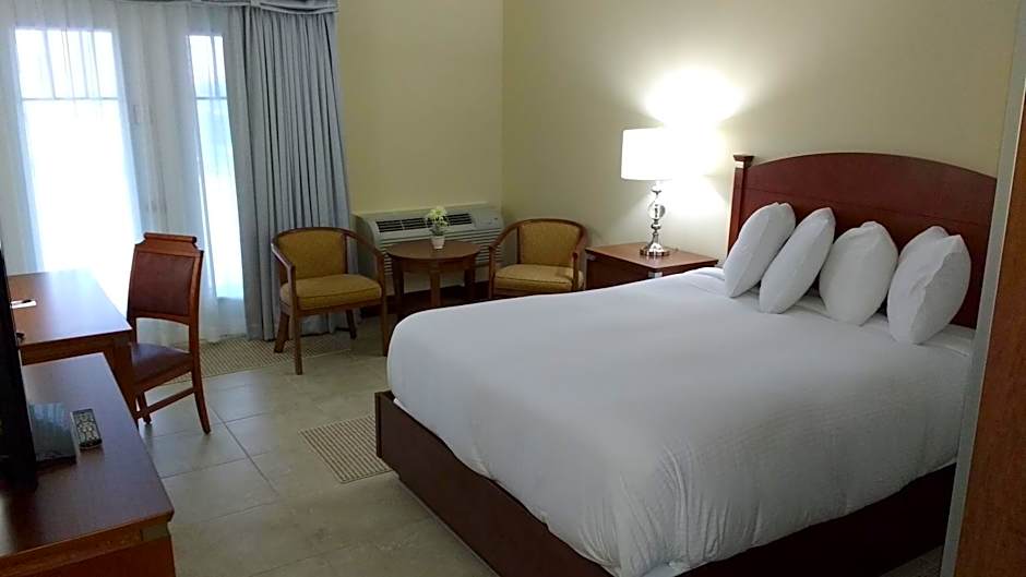 This street level, modernly decorated studio enjoys a wet bar with a microwave, coffee maker and mini refrigerator. Free Wi-Fi and air conditioning are also included. You can park right at the door to your room.