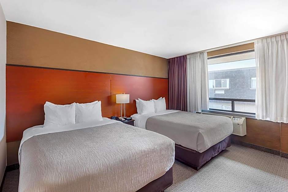 The Quality Inn Toronto Airport offers a variety of room types including Double Rooms with Two Double Beds, Queen Rooms with Sofa Bed, Business King Rooms, Queen Rooms with Two Queen Beds, and Queen Rooms. All rooms are non-smoking and have different sizes ranging from 205 sqft to 495 sqft. The occupancy for these rooms varies, accommodating anywhere from 2 to 4 adults and 1 to 3 children, depending on the room type.