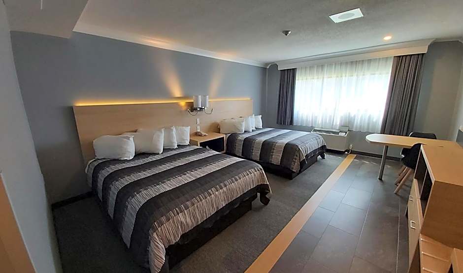 At the Americana Waterpark Resort & Spa, guests can choose from rooms like the One-Bedroom Suite and Deluxe 2 Queen Room, both designed for families. These rooms offer a room size of 205 sqft, accommodate 4 adults, and feature 2 Queen size beds. Smoking is not allowed in these rooms.