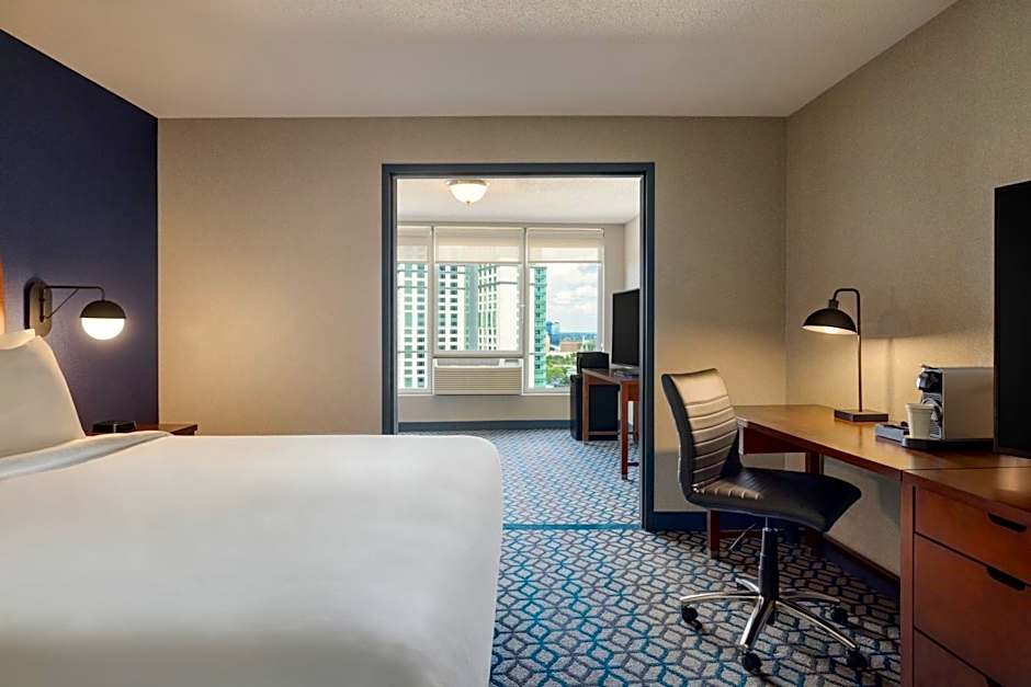 There are several restaurants available within the hotel. Ruth's Chris Steak House & Bar offers a modern and romantic ambiance, serving American, seafood, and steakhouse cuisines. IHOP Restaurant is family-friendly, serving American cuisine. TGI Fridays is another restaurant option, offering American cuisine.