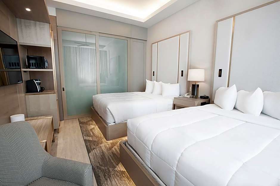 This quadruple room features air conditioning, microwave and cable TV. They also have air purification, vitamin infused shower, aromatherapy, and more to ensure you have a rejuvenating night of sleep.